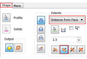 Save time with the new extents option Distance from Face. Use Distance from Face in the Extrude dialog box to start an extrusion from a face or workplane with a distance. Distance from Face creates a copy of the selected face along the extruded direction. Additionally, modifying the geometry becomes easier. Because Distance from Face creates one central entry point for modifying the geometry, no additional steps to make sketches or workplanes are needed.