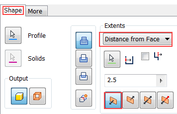 With Distance From Face and Direction 1 or Direction 2 selected on the Shape tab, use the options on the More tab to get different results.