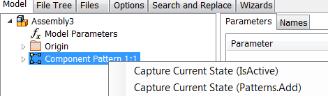 Step 2 In the assembly file, in the Edit Rule dialog box on the Model tab, multi-select the part names, right-click, and then select Capture.Current.State (Components Constraints.Add) from the context menu. |