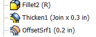 For more information about the Thicken/Offset command, see To Thicken Faces or Offset Surfaces.