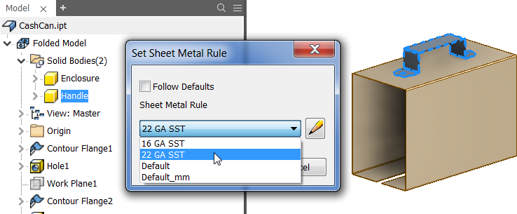 For more information, see To Change Default Rules for Sheet Metal Parts.
