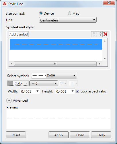 - For Select Symbol, select a dashed pattern for the lines.
