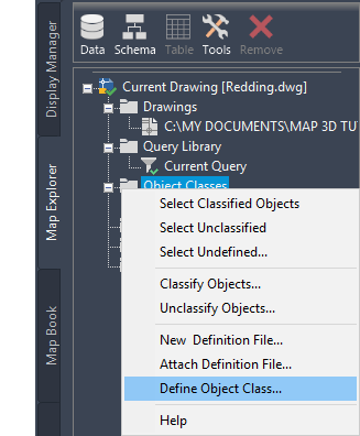 Base each new object class on an existing object. Start by opening a map that contains objects that are typical of the object class you are defining (“model objects”). In this example, you open a map of roads to define the Roads object class.