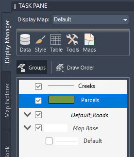 The parcel layer in AnnotationTutorial.dwg is a geospatial feature class. The actual data is stored in an SDF file called Parcels.sdf. The map connects to this file and displays the geometry and data for the parcels in the map. You can style the parcels any way you like. The styling does not affect the data store itself. Styling is saved in the map, along with the information for connecting to the data store.