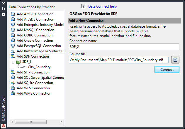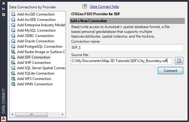 Select the SDF provider and navigate to the sample file, CITY_BOUNDARY.SDF.