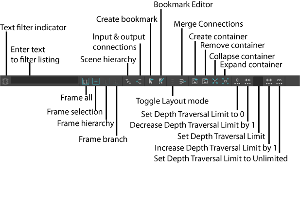Enter syntax into the text box beside the Text FIlter icon to limit the node listing in the Hypergraph. The syntax is case-sensitive. For example, P* shows only the nodes beginning with the letter P. Note: Every listed child node is displayed with its corresponding parent node even if the parent node would not otherwise be shown because of the filter.