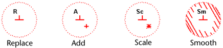Notice that the brush stamp changes to indicate which operation is selected.
