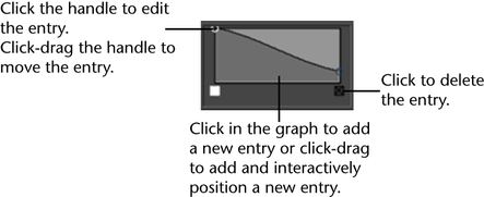 You can use the ramp graph to define a varied stiffness from root to tip for the hair clumps in your hair system. The left-side of the ramp graph represents the roots of the hair clumps in your hair system and the right-side represents the tips. For example, if you want the roots of your hair clumps to be less stiff than their tips, then the value on the right-side of the ramp graph should be smaller than the value on the leftside.