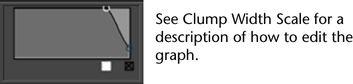 Using a ramp (graph) you can define a varied width for hair clumps. Clump Width Scale affects the width from root to tip of the hair clump. The left of the graph is the root and the right is the tip. You might want the hairs within the clump to come to a tip at the end of the clump, in which case the right value should be smaller than the left. This attribute multiplies the Clump Width parameter value, so a value of 1.0 will leave the Clump Width unchanged. If the Clump Width attribute is zero then this parameter will have no effect.