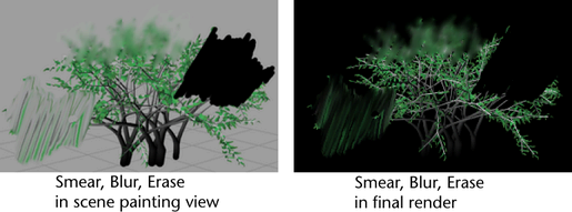 Blur, respectively. These brushes affect existing strokes using the shape of the brush you erase, smear, or blur with. For example, if the brush has leaves, the paint smears, blurs, or erases where the leaves are painted.