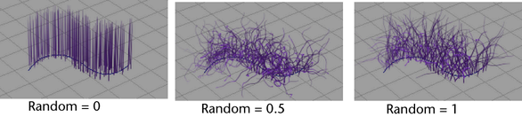 Defines the magnitude of a force with a random direction and intensity, applied in the local space of each tube. If the value is 0, no force is applied. As the value increases, the force increases. This value is useful for making trees and bushes appear gnarly.