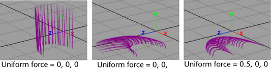 Defines the magnitude of a basic directional force to apply to tubes. the x, y, and z world space coordinates. If a value is 0, no force is applied from that direction.