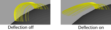 Turn on Deflection to apply a force that stops tubes from passing through the surface or plane they are growing from (for example, when gravity pulls branches down). The force pushes upwards and is stronger closer to the surface or plane.