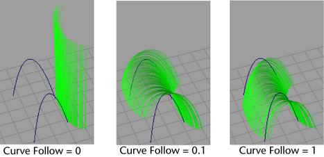 You can make tubes follow control curves that are associated with strokes. For details, see Modify tube behavior using control curves. The CurveFollow setting defines the magnitude of the force that tries to make tubes grow in the same direction as the associated control curves. A positive value attracts tubes while a negative value repels them.