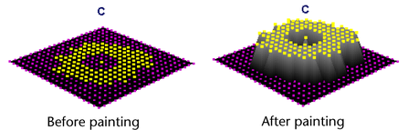 - Paint the surface with the selected Artisan tool. Any brush strokes you make affect only the selected components. Unselected components are masked and are unaffected by your painting, as shown in the following example.