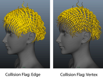 The nHair object’s edges collide. Collisions occur at the collision cylinders that surround nHair edges.