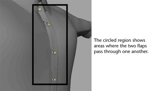 The two flaps of the shirt now collide with one another correctly without passing through each other.