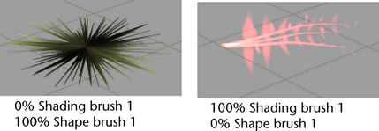 For example, suppose you like the shading used for one brush, but you like the shape of another. You can blend the brushes so that the new brush uses 100% of the shading of the first brush, and 100% of the shape of the other.