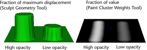Brush opacity refers to the fraction of the maximum displacement or brush value (depending on the selected tool) to apply to each brush stamp within a stroke.