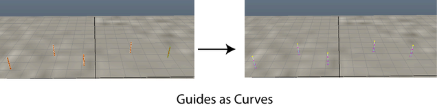Temporally converts selected guides to curves so that you can shape and edit them as curves. Use this option to shape and edit guides that control the primitives in the current Description.
