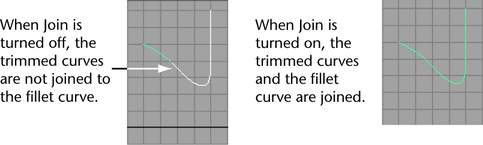 Joins the trimmed curves to the fillet curve, thereby creating a single curve. Available only when Trim is on.