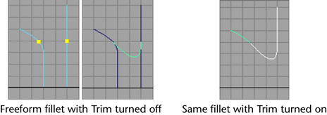 Keeps only the parts of the original curves that flow toward the fillet curve ends. Other parts are deleted.