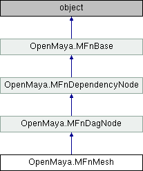 Inheritance diagram for OpenMaya.MFnMesh:Additional Inherited Members | |