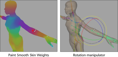 Paint Skin Weights Tool brush to the Rotation manipulator.