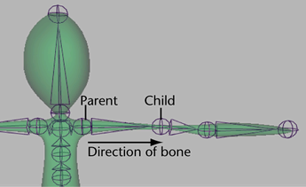 A parent joint is any joint higher in a skeleton’s hierarchy than any of the other joints that are influenced by that joint’s actions. Joints below a parent joint in the skeleton hierarchy are called child joints. Joints at the top of bones are always parents, and joints at the bottom of bones are always children. Parent joints drive the transformations of their respective child joints. Thus, when you translate or rotate a parent joint, you also translate or rotate all of its child joints.