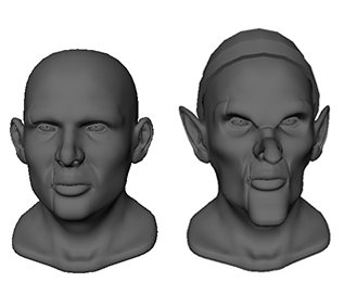 In this lesson you alter an existing polygonal head model into a goblin by sculpting the mesh with the transformation tools.