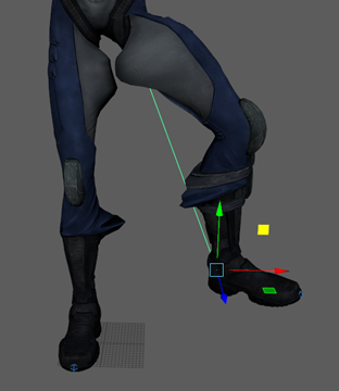 You can also select the IK handles in the Outliner. The handles are indented under SvenSkeleton. Each is named for a leg or arm, for example, ikHandleLeftLeg. For more details on IK handles, see Skeletons and kinematics.