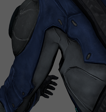 As you pose the arms and legs, examine the skin in the regions where joints bend. For many poses, the skin looks natural. For others, the skin folds, compresses, or bulges unnaturally. The pelvis, shoulders, and torso are common problem areas for various poses. For example, if you move one of the legs out, the sides of the legs stretches as in the following figure. This is because the legs joints have some influence over the opposite leg. As another example, the side of the torso compresses unnaturally when moving the arm.
