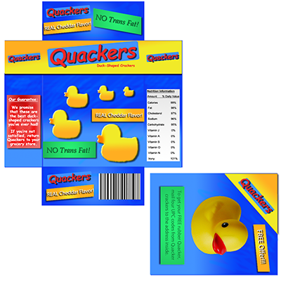 The image contains 2D artwork for the front, back, top, bottom, and sides of the cracker box.