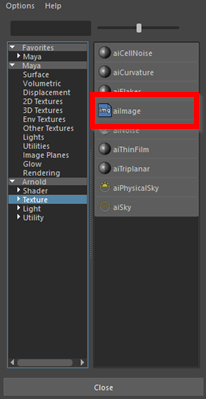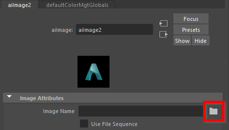 The Attribute Editor updates to display the options for the Arnold image texture.