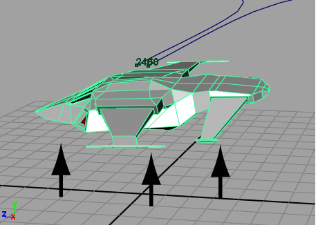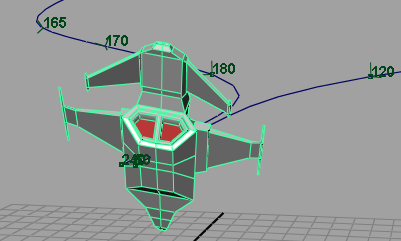 In the steps that follow, you keyframe the aircraft to rise vertically from the floor surface and then travel along the motion path by blending between the two animation types. To accomplish this, you do the following: