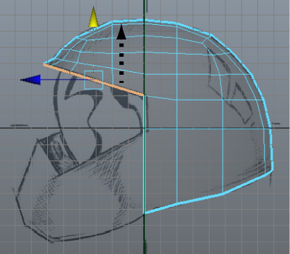 Up to this point in the lesson, you’ve been instructed to reposition the vertices on the helmet mesh only within the side view (Y, Z plane). Once you achieve the shape you want in the side view you will then concentrate on how the model appears when viewed from the front and perspective views.
