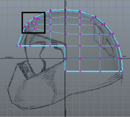At this point in the lesson, the outline of your helmet should roughly match the helmet in the side view reference image. If it doesn’t, review the earlier steps in this lesson and make any adjustments to your polygonal mesh as required.