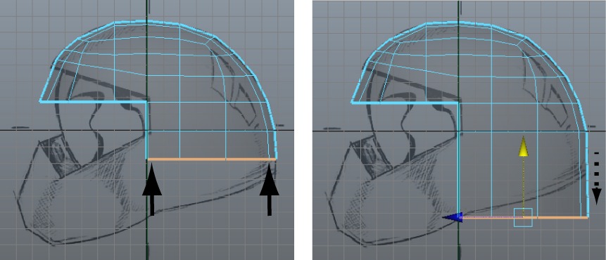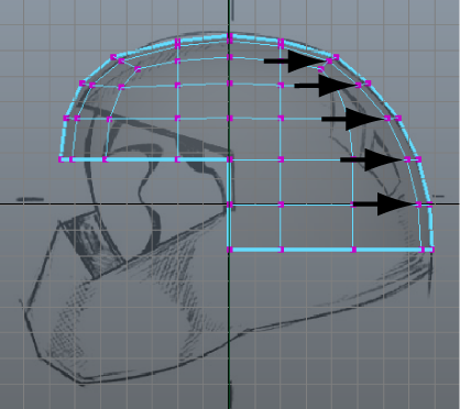 To reposition vertices on the side of the helmet to match the sketch