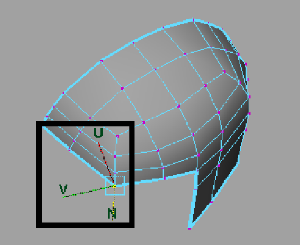 The U and V handles slide the vertex in relation to its associated edges, while the N handle moves the vertex either away or towards the mesh depending on the direction you move your mouse.