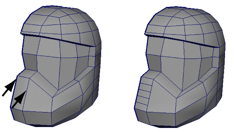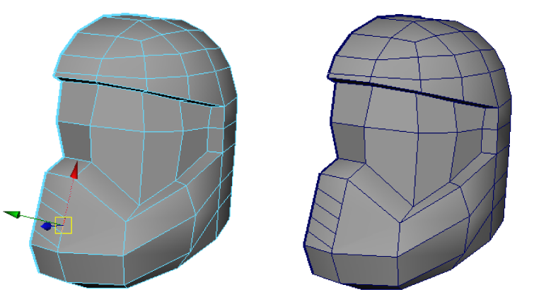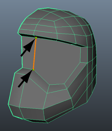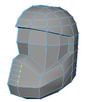 Earlier in the lesson you split the helmet mesh by inserting edge loops across the mesh. You can split localized areas of a mesh using the