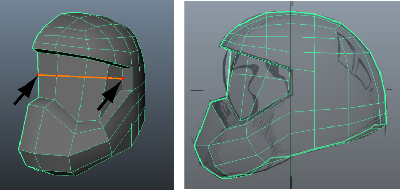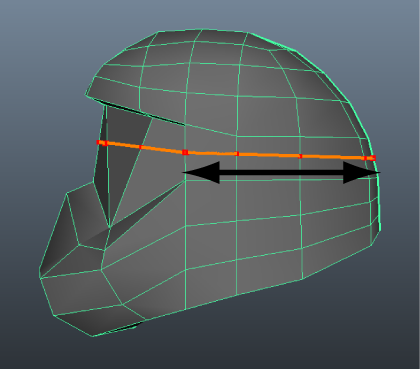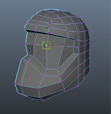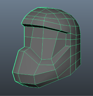In the next steps you'll reposition some of the vertices along the horizontal split to make the face shield protrude outwards a small amount.