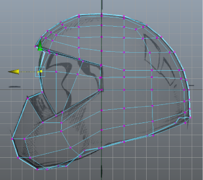 - In the perspective view, select the remaining middle vertices on the face shield one at a time and reposition them outwards a small distance using the