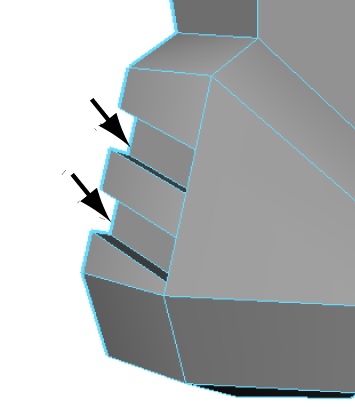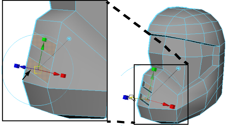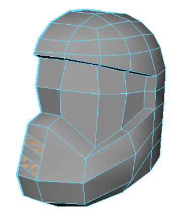 To create the diagonal grill vents on the lower front of the helmet you’ll insert edges on the face, reposition some of the vertices, and then extrude some of the faces.
