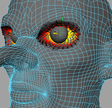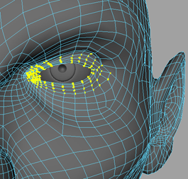 - On one side of the mesh, drag the mouse around the eye socket, beneath the eyebrow until you’ve covered a small area around the eye.