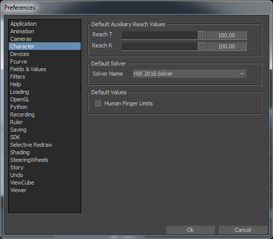 Controls the default value of the character's HumanFingerLimits property value when creating a new character. This preference is turned off by default. |