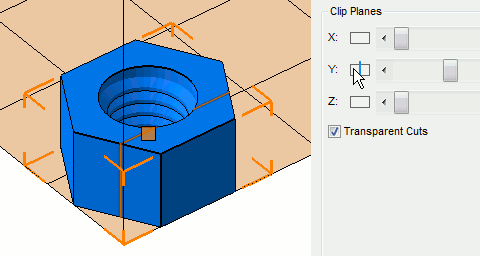 Use the clip planes to have a look at the inside of a part