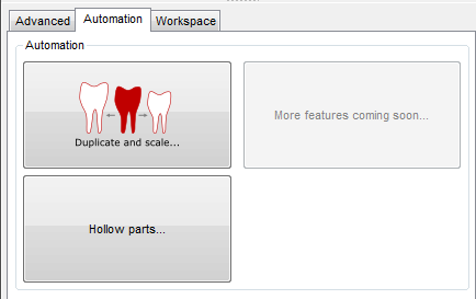 Many of the SL machine workspaces have an Automation tab in the context view that contains commands for duplicating, scaling, and hollowing your parts.