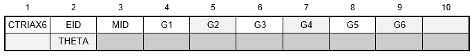 Description: Defines an isoparametric axisymmetric triangular cross-section solid element with midside grid points.