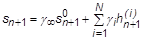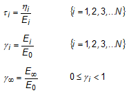 where the stress at each relaxation component is calculated by: