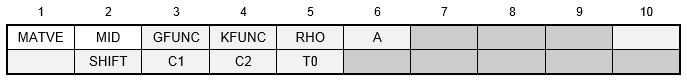 | GFUNC | Identification number of a TABVE entry. The TABVE table contains a series of shear modulii and decay coefficients to represent the shear modulus relaxation function of the material. | Integer > 0 or blank | |||